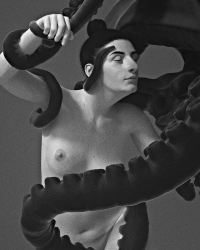 ︎︎︎This piece is part of the 'Monochrome Dreams' series. The story is told from the perspective of female octopus who is love with a pearl diver.︎︎︎Day by day I'm watching you diving and collecting pearls. Your eyes are ardent like the burn of the medusa. Your hair are like algae flickered by the underflows. Your lips are scarlet like poisonous corals. Your skin is shining like fish scales. I gave you my heart. You are the most beautiful human creature in the ocean. When I sleep, I see you in my dreams. I touch you, I kiss you, I squeeze your hips so tight that you breathe frequently. You fade away as I wake up and I'm looking forward to fall asleep again and see you, my beloved one.